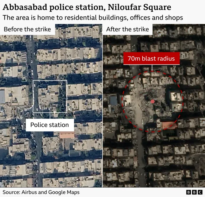 On 1 March, an Israeli strike hit the Abbasabad police station near Niloufar Square, where families had gathered after breaking their Ramadan fast.