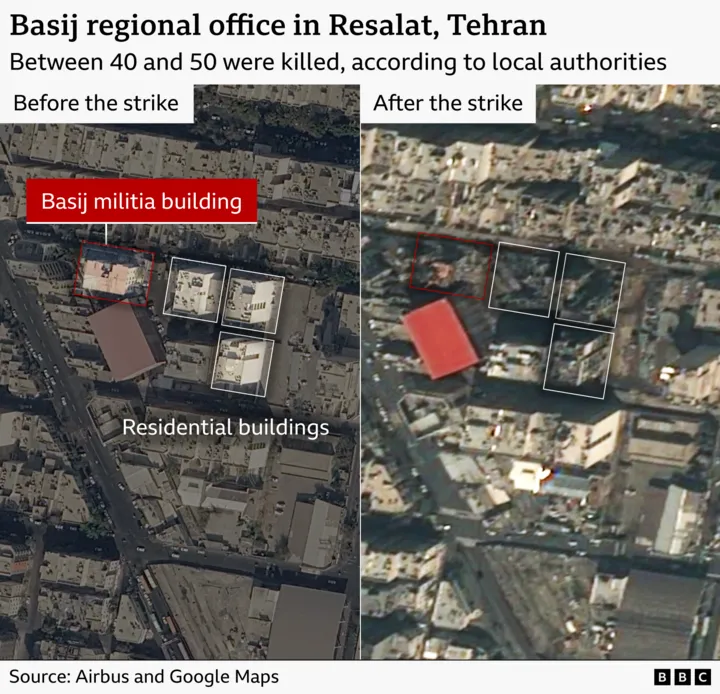 A man whose apartment was damaged said he was "thrown across the room" when the strike hitThe IDF says it targeted a military building used by the Iranian Basij, a paramilitary force linked to Iran's Islamic Revolutionary Guard Corps (IRGC).