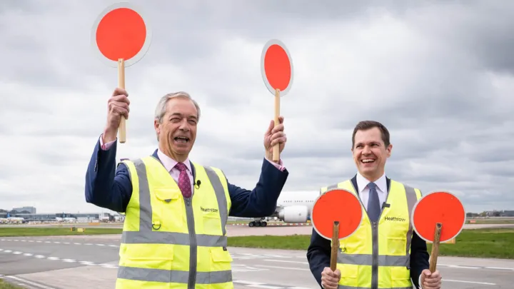 PA MediaNigel Farage and Robert Jenrick announced the move at a news conference at Heathrow AirportReform UK has said it would scrap the tax on short-haul flights for adults travelling with children if it wins the next general election.